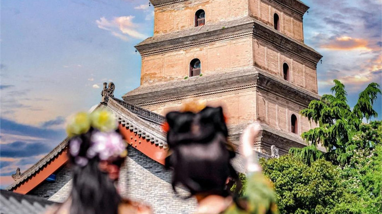 大雁塔矗立于古都之中,是一座串联过去和未来的人间宝藏。也是长安特有的浪漫,低头有光,抬头有诗。抬头见诗词、一望即长安。