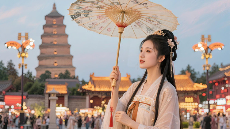大唐不夜城,邂逅不倒翁小姐姐(地址:大雁塔北广场西辅门,每晚19:30/20:15/21:30三场表演)